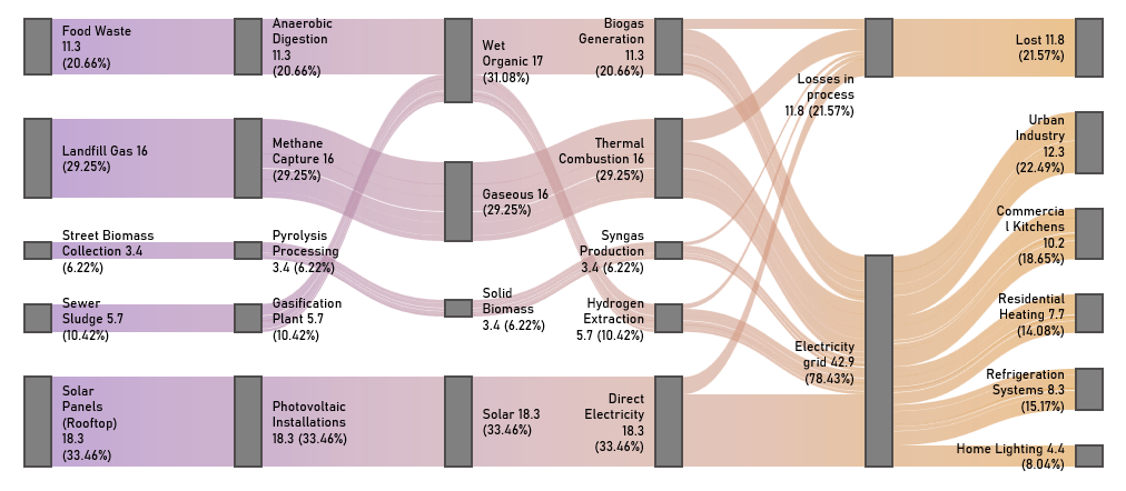 A diagram of energy captured by a city’s energy grid. Energy that is not able to be utilized is emitted by the system, but physically still exists!